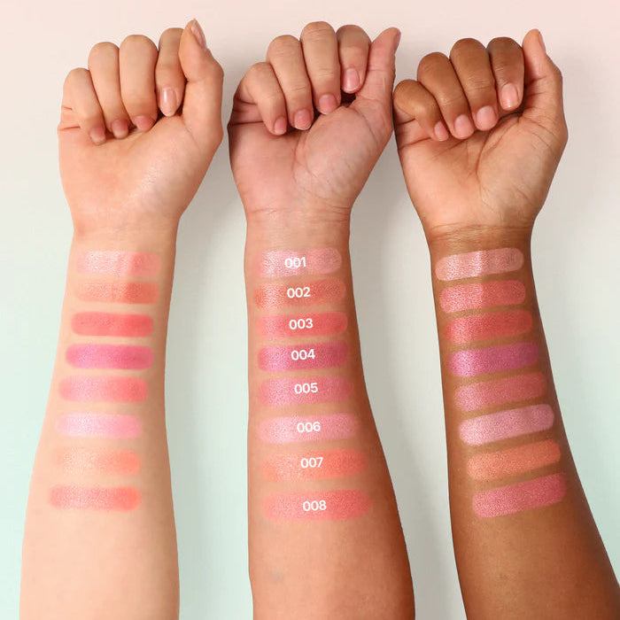 Mica, fluorphlogopite synthétique, borosilicate de calcium et de sodium, palmitate d'éthylhexyle, bis-diglycéryl polyacyladipate-2, diméthicone, trimellitate de tridécyle, silice, stéarate de magnésium, octénylsuccinate d'amidon d'aluminium, isododécane, polyisobutène, bentonite, phénoxyéthanol, méthicone, oxyde d'étain, caprylyl glycol, acétate de tocophéryle, 1,2-hexanediol, éthylhexylglycérine, chlorphénésine, triglycéride caprylique/caprique, huile de fruit de Rosa canina, huile de Prunus amygdalus dulcis (amande douce), PEUT CONTENIR (+/-) : dioxyde de titane (CI 77891), oxyde de fer rouge (CI 77491), laque rouge D&C 6 Ba (CI 15850), Oxyde de fer noir (CI 77499), D & C Rouge 7 Ca Lake (CI 15850), FD & C Jaune 6 Al Lake (CI 15985), FD & C Jaune 5 Al Lake (CI 19140).