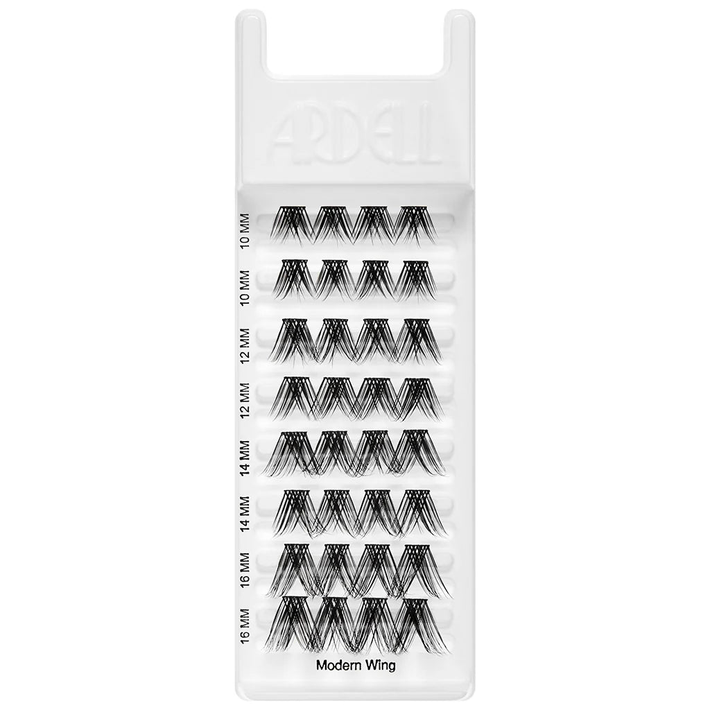 Les extensions de cils Ardell Modern Wing Seamless Underlash Extensions Modern Wing sont composées de fibres superposées en V large, créant une définition audacieuse et pointue une fois appliquées.  Parfait pour ceux qui ont adoré le kit et veulent des cils à la carte, le pack de recharge contient 32 grappes brevetées sans nœuds pour un mélange homogène. Créez du volume et de la longueur pour un look subtil ou remarquable. 4 longueurs vous permettent de personnaliser la forme de vos yeux du coin intérieur au coin extérieur : 10 mm, 12 mm, 14 mm, 16 mm.