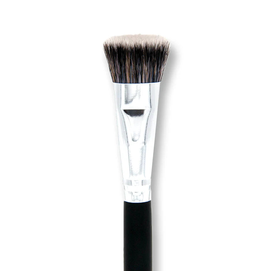 Grâce à sa petite taille et à ses poils denses, le Pro Mini Flat Contour est l'outil de contouring idéal pour les zones les plus délicates du visage, comme l'arête du nez, le contour des sourcils et des yeux. Ce pinceau synthétique ultra-doux est non testé sur les animaux, facile à nettoyer et conserve sa forme et sa structure au fil des utilisations.