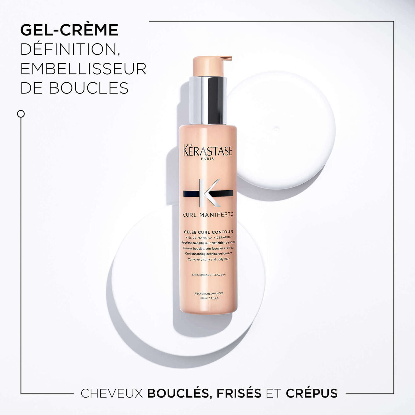 La Gelée Curl Contour de la gamme Curl Manifesto de Kérastase est un gel-crème conçu pour sublimer les cheveux bouclés, frisés et crépus. Sa texture légère et fondante fusionne les bienfaits d’un gel de définition et d’une crème hydratante, pour redessiner les boucles, dompter les frisottis et apporter de la brillance.