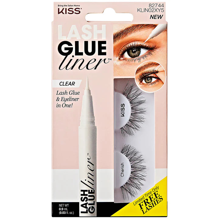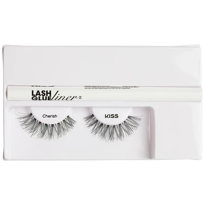 Chaque paquet contient un crayon à cils Kiss transparent et une paire de faux cils Cherish.