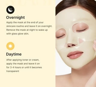 2. Appliquez le masque gel au collagène rose Medicube PDRN sur le visage, en l’alignant confortablement et laissez-le agir pendant au moins 2-3 heures, jusqu’à ce qu’il devienne transparent.