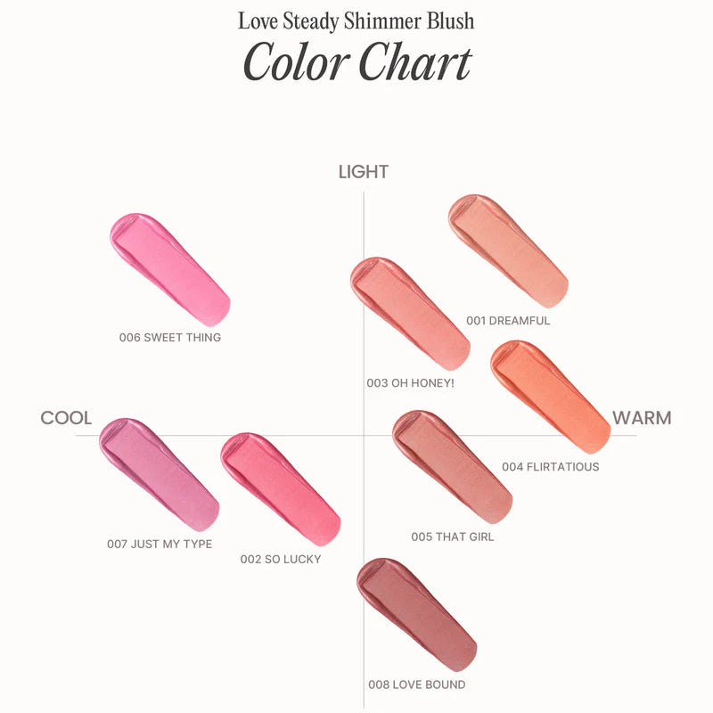 Le blush MOIRA Love Steady Shimmer apporte un éclat parfait avec une touche de couleur éclatante. Ce blush liquide et enlumineur s'estompe parfaitement et offre une sensation de légèreté. Son applicateur épais en forme de pied de biche permet de l'appliquer facilement et de moduler l'éclat à votre guise. Grâce à l'extrait de crocus et à l'huile d'arnica, doux pour la peau, c'est votre nouveau produit incontournable pour un fini doux et lumineux.