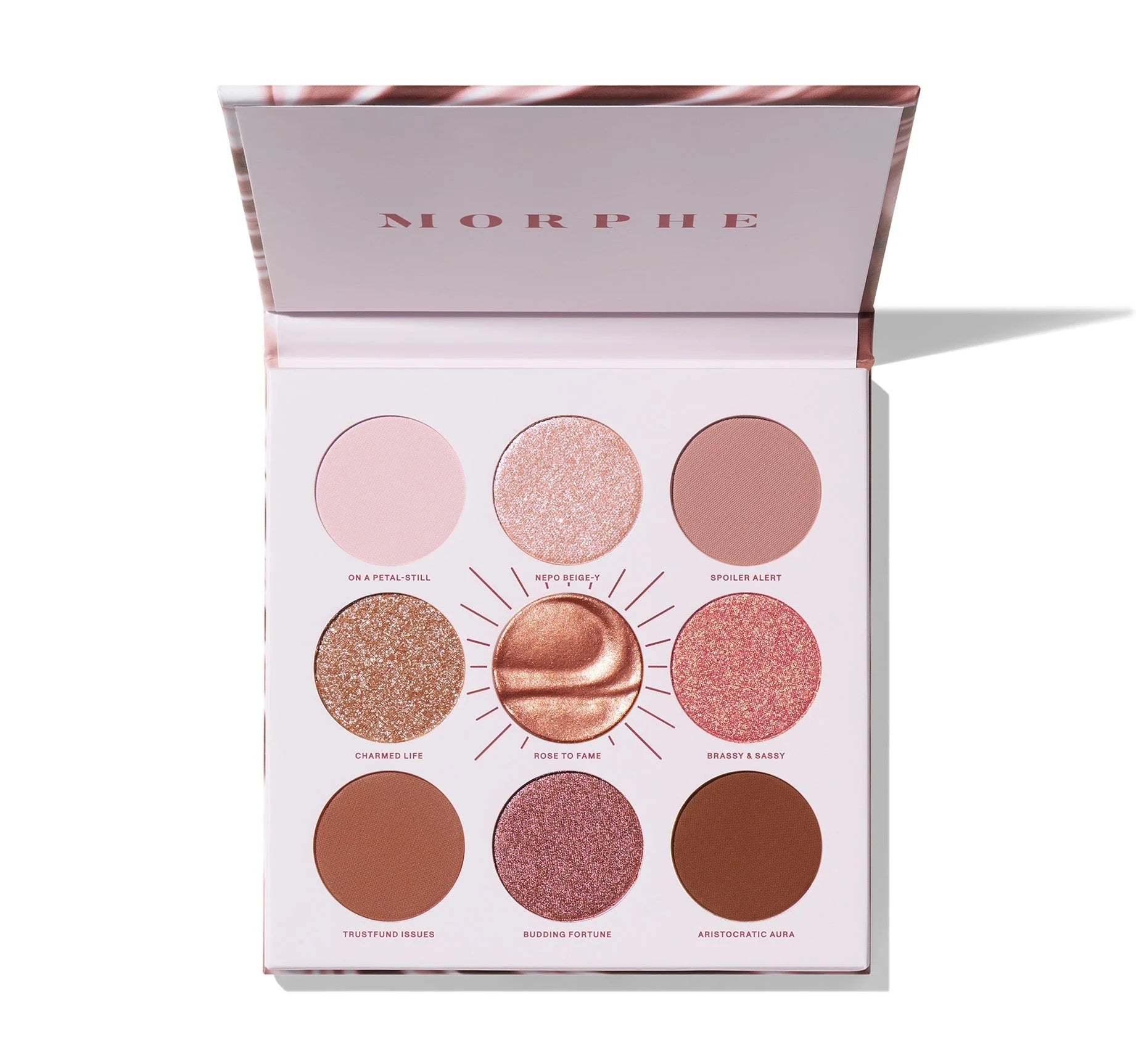 Découvrez une multitude de possibilités en un clin d'œil avec les palettes de fards à paupières Morphe Rich & Foiled. Inspirées par l'attrait indéniable des métaux précieux, ces sélections de neuf fards, à la fois expressives et intenses, subliment le regard avec des teintes mates, scintillantes et métallisées luxueuses, sans oublier un joyau : le premier fard à paupières effet métallisé Molten Metal. Appliquez-le à sec pour un rendu onctueux et incroyablement lumineux, ou humide pour une brillance intense et intense.