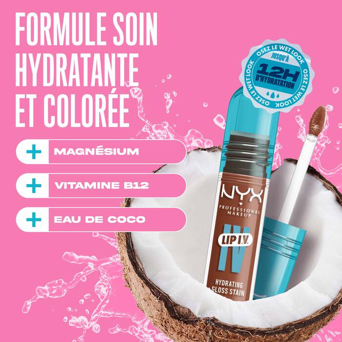 Mouillez-vous et osez le wet look ultra-glossy avec LIP I.V. (Instant Vitamins), la première encre à lèvres soin haute brillance de NYX Professional Makeup !
