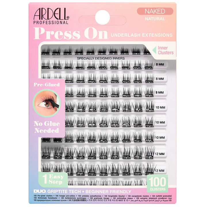 Renouvelez votre collection Naked Lash avec ce multipack à prix avantageux : 100 touffes de cils en 3 longueurs vous permettent de superposer, combler ou accentuer votre regard pour des poses personnalisées dignes d'un salon, à la maison. Les mini touffes Innie sont inclinées pour épouser parfaitement le coin interne de l'œil et se fondre harmonieusement avec votre ligne de cils. Les touffes Inner complètent votre look en un clin d'œil. Retrouvez l'esthétique Naked « clean girl » que vous aimez, réinventée en version à pression. Des cils frais et légers créent un volume naturel subtil grâce à des mèches ultra-légères, des longueurs irrégulières et un léger entrecroisement.
