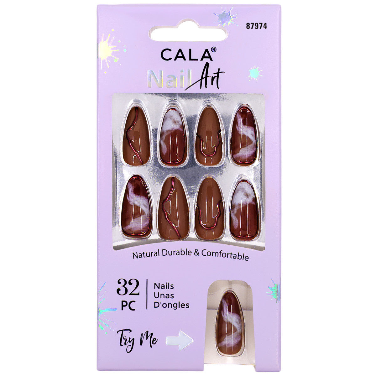 Faites tourner les têtes avec une manucure chic de qualité salon en quelques minutes. Ces ongles press on CALA Nail Art marbré terre présentent une base riche en couleur marron chocolat avec des tourbillons d'accents blancs doux, donnant à votre manucure une touche chic et moderne. Parfait à porter au quotidien comme pour les occasions spéciales, cet ensemble combine des tons naturels avec un effet marbré luxueux.