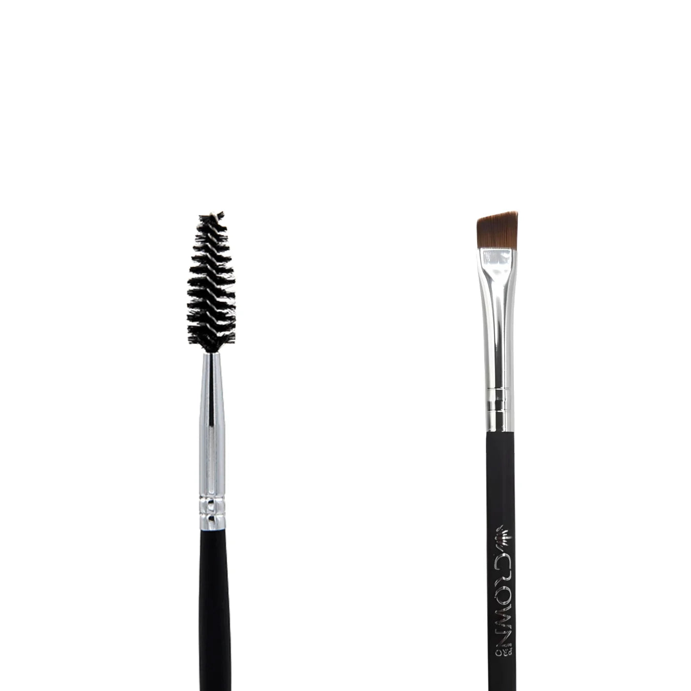 Ce pinceau à sourcils à double embout est doté d'un coté biseauté pour une application précise des produits en crème ou en poudre, et d'une brosse goupillon pour estomper et modeler.