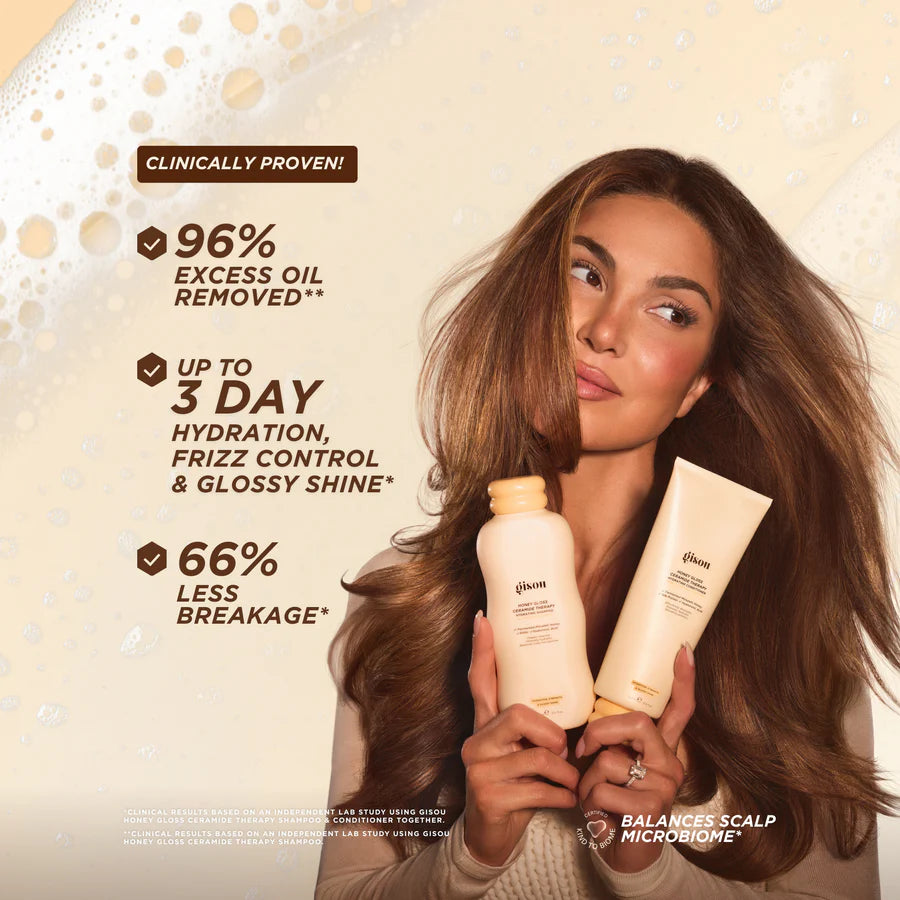 *Résultats cliniques basés sur une étude en laboratoire indépendante du shampooing hydratant Honey Gloss Ceramide Therapy.